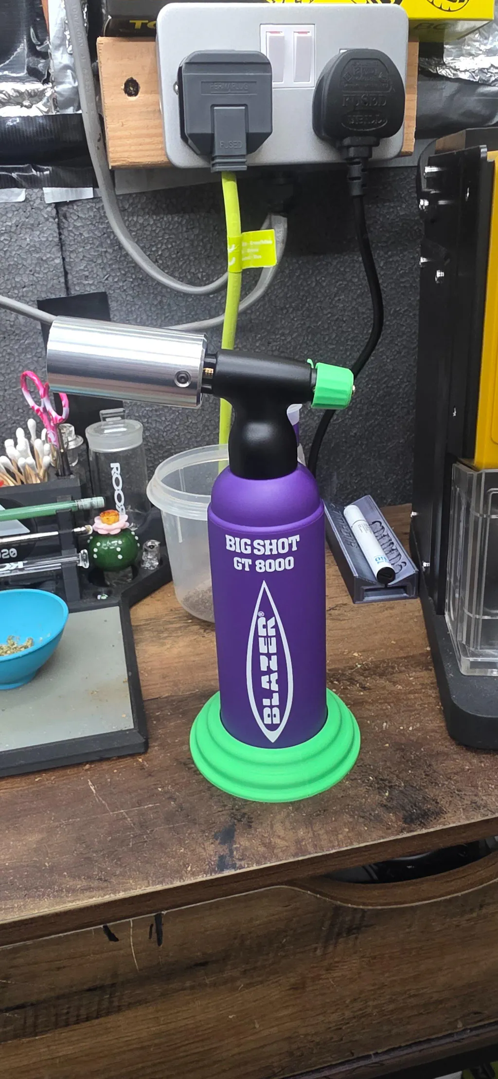 The Blazer Big Shot GT-8000 Blowtorch is generally accepted to be the best blowtorch available for dabbing and vaporization and is functionally the same as the welding version of the torch. It has a fully adjustable large flame which fires in any orientation and a large capacity for those long sessions. The GT-8000 Big Shot also has a nice grippy plastic body which not only helps you hold the torch more securely, but also provides protection and insulation to the gas cartridge inside! This is a super powerful torch and is not to be underestimated.