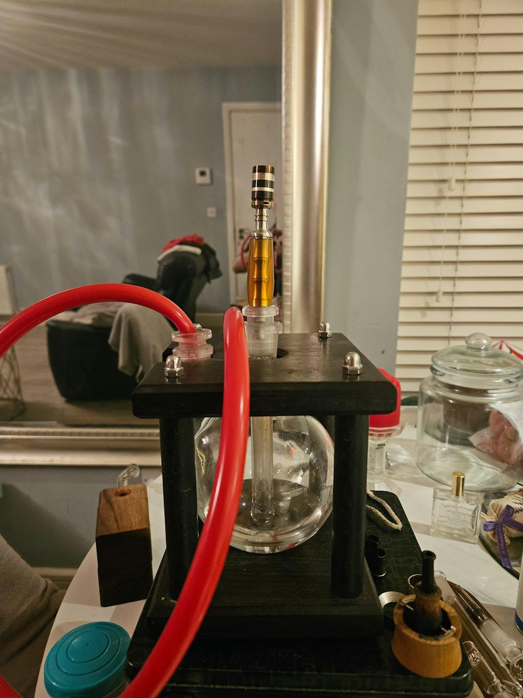 - The the airflow adjustment can be locked in place - to do this hold the device below the cap, with the cap facing away from you, then rotate the external sleeve clockwise. This will lock the airflow position. If you want to adjust the airflow simply hold the device in the same way again, rotate the sleeve anti-clockwise, then rotate the mouthpiece clockwise to adjust the airflow. This is entirely optional and you can just leave it unlocked, but noteworthy because if you aren't aware of this, you may accidentally lock the adjustment without knowing how you did it or how to undo it (like we did when we first got it!)!