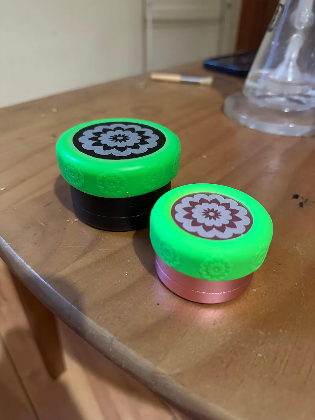 Replace the top. Apply even and gentle pressure to the top while twisting in a back and forth motion until the herb has been milled! You don't want to apply lots of pressure to force the herb through the holes of the mill plate, let it do the work for you.