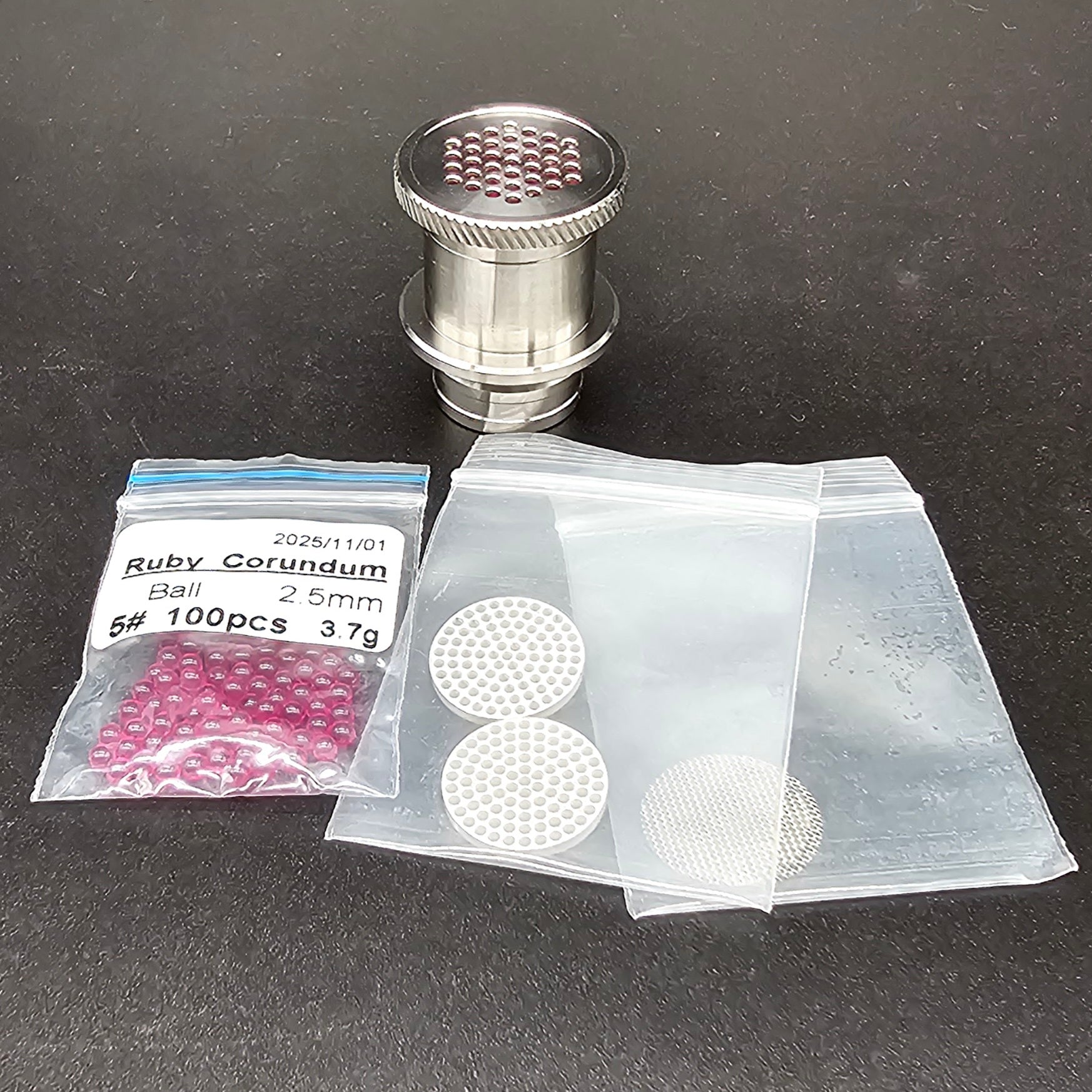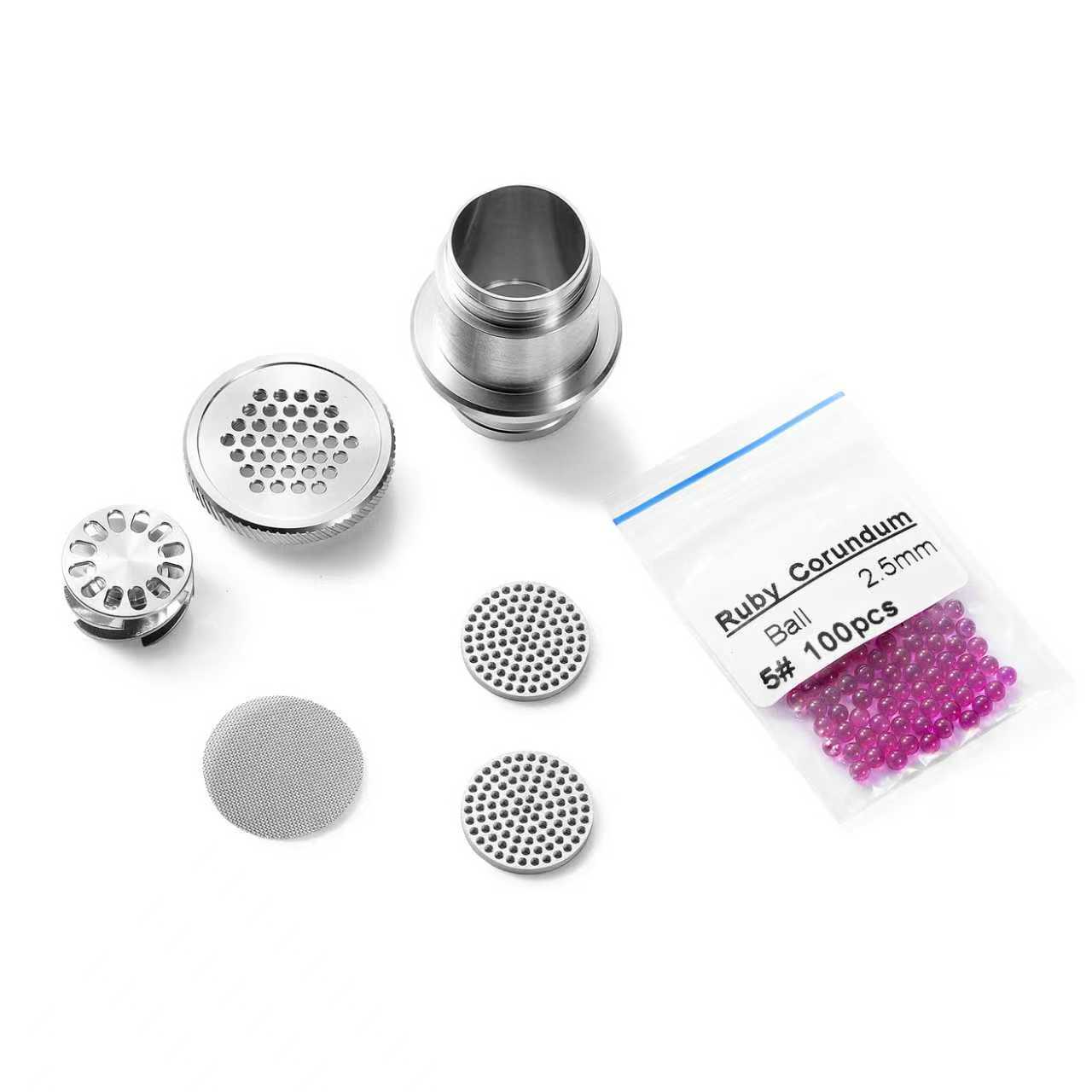 If you're going to use it without the spinner widget, remove the cap, pour out the rubies then replace the spinner widget with the CNC screen included in this pack, then pour the ruby balls into the housing before installing it into your heater coil and screwing the cap back on. You can add one of the mesh screens on top of the CNC screen for good measure, just to ensure the balls don't obstruct the holes in the CNC screen.