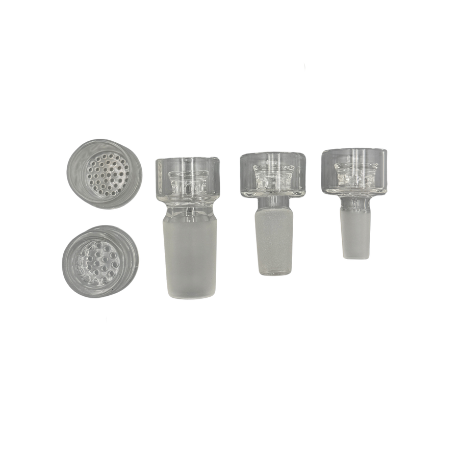 Bowls for the Universal Baller by Terp Chasers Club. As mentioned on the listing for the kit you should always leave a small gap above your herb so it doesn't sit too close to the heater. We suggest a medium grind particularly when using the bowls with a glass screen (all except the Screenless Bowl) as small particles can easily make their way through otherwise.