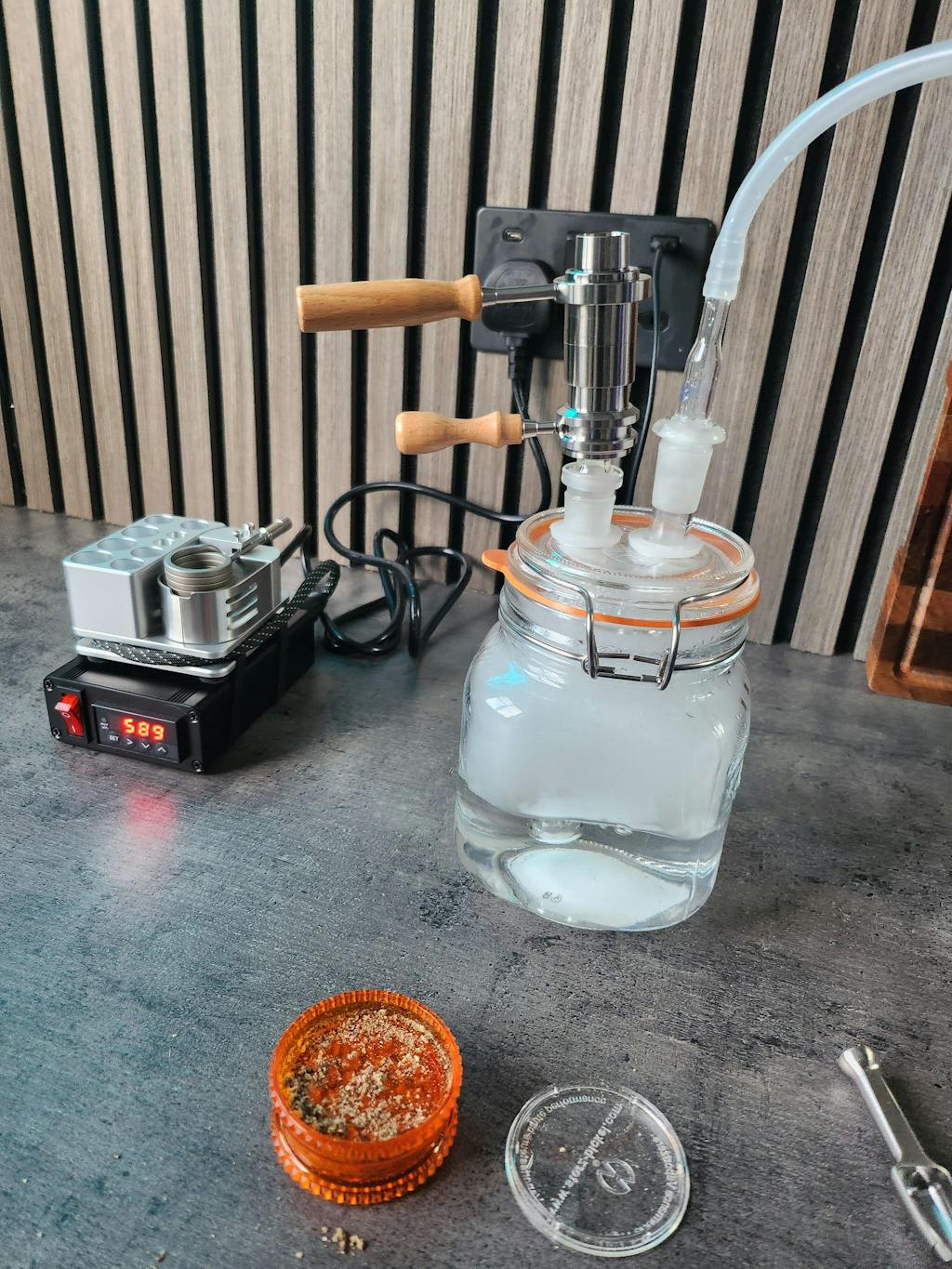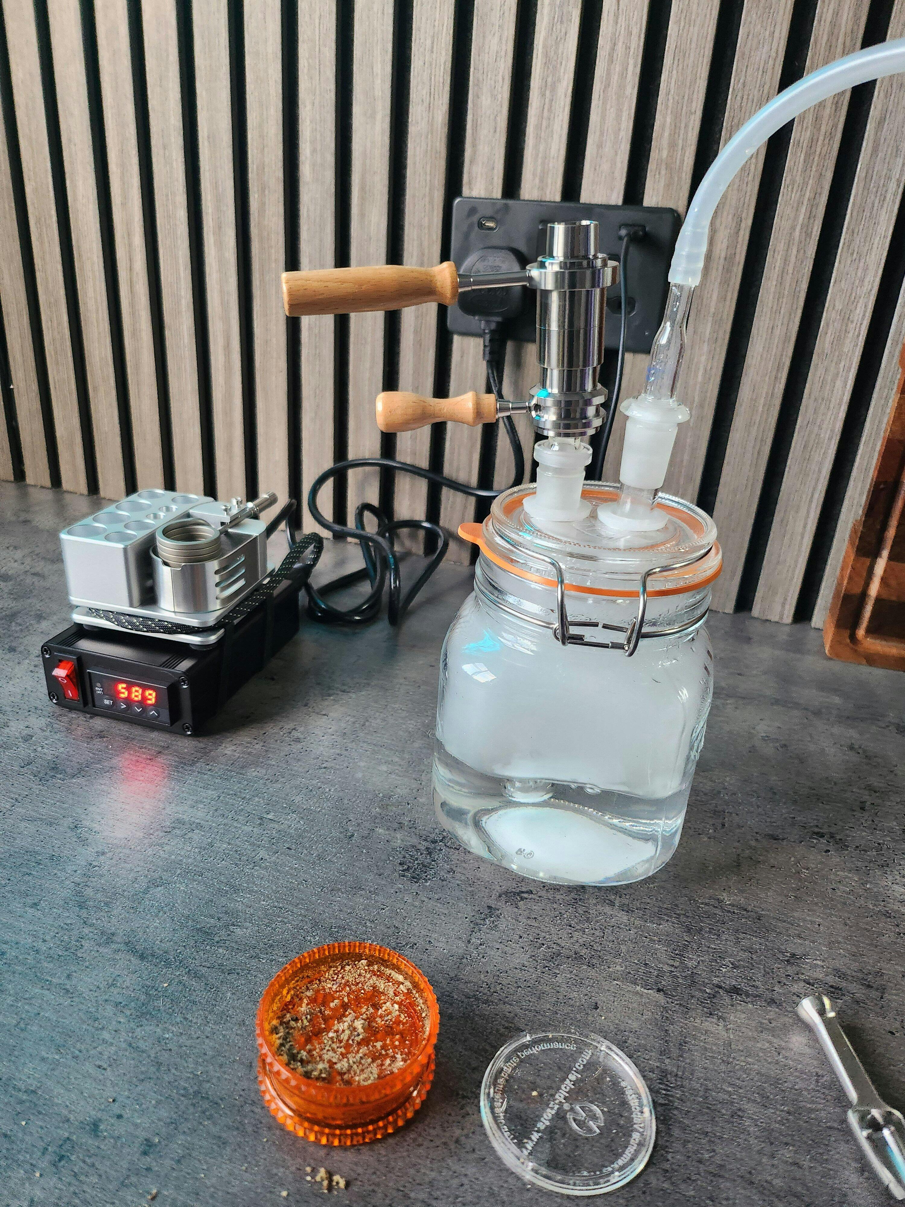 This setup takes around 5 minutes to heat from cold, then around 30-60 seconds to reheat in between sessions, depending on how long your inhale was, how fast you inhaled, the temperature you're running and if you take pauses between inhales. Most people will find they can get a full extraction from one heat cycle before needing to put it back on the stand to re-heat. (This is the most commonly asked question so I thought I'd pop the answer here!).